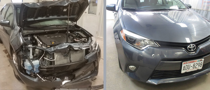 This Toyota was another Wisconsin deer hit accident that was towed into our collision repair shop in Chippewa Falls.